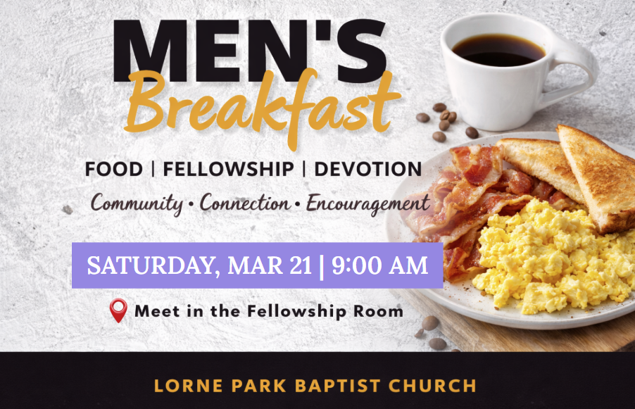 Join us on Saturday, March 21st, 2026 for our Men’s Breakfast!